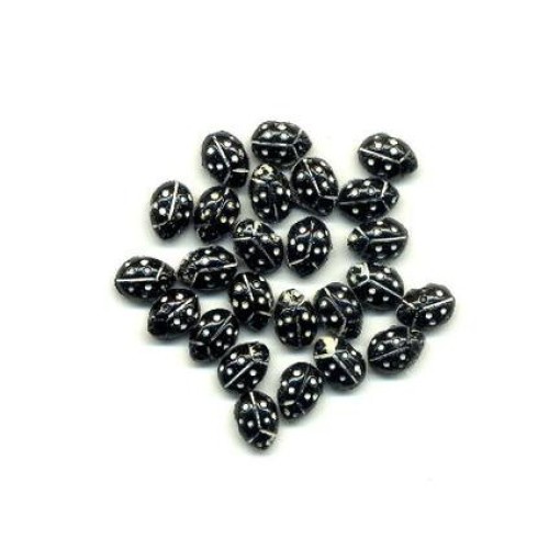 Discover Vintage 1930's Czech Glass Ladybug Beads! Measuring 7mm x 6mm x 3.5mm, these unique ladybug beads have a hole running from side to side, perfect for your jewelry-making needs. Available in four stunning colors: Black, Brown, Turquoise, and Yellow. Each lot includes 25 adorable ladybug beads. Enhance your designs with these charming, high-quality vintage beads today!