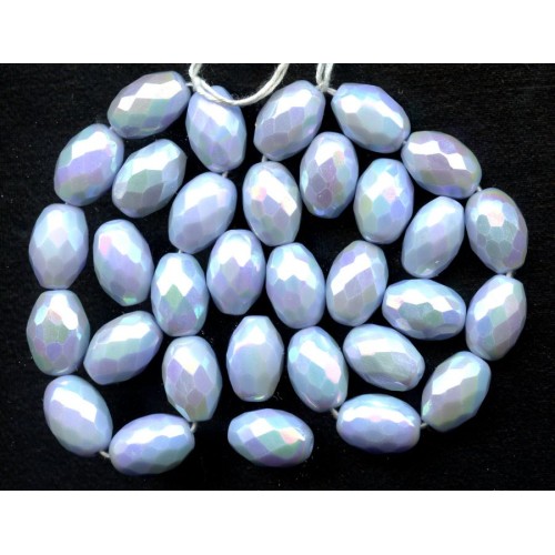 These beautiful vintage Lustre ovals measure 10mm x 15mm. They have a lovely AB finish. There are 10 of these beautiful beads per lot.