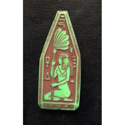 This gorgeous Egyptian Revival Green Focal Pendant measures 57mm x 24mm x 6.5mm thick and has a wonderfully detailed design on both sides.... Hole runs from top to bottom....Happy Beading!