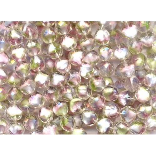 Beautiful vintage summertime givres measuring 11mm...Clear glass with bursts of pink, white, pale mint and a touch of powder blue here and there. Look for these listed in 7mm. You get 12 beads.