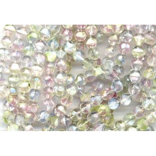 These are the same as the 11mm I have listed. Lovely! Beautiful vintage summertime givres measuring 7mm...Clear glass with bursts of pink, white, pale mint and a touch of powder blue here and there. Look for these listed in 11mm. You get 15 beads.