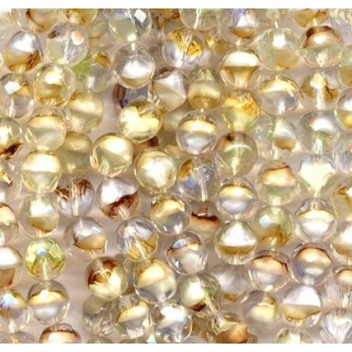 Beautiful vintage givre beads measuring 8mm x 11mm. These are clear with bursts of amber,pale mint, ..
