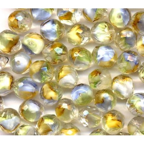 Beautiful vintage givre beads measuring 9 mm. These are clear with bursts of amber,pale mint, blue a..