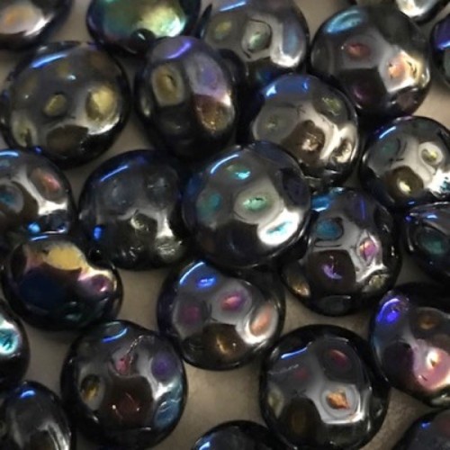 There are 14 gorgeous iris glass pancake beads each measuring 10mm in this lot. The Blues and Purples in these beads emit a spectacular! array of color.