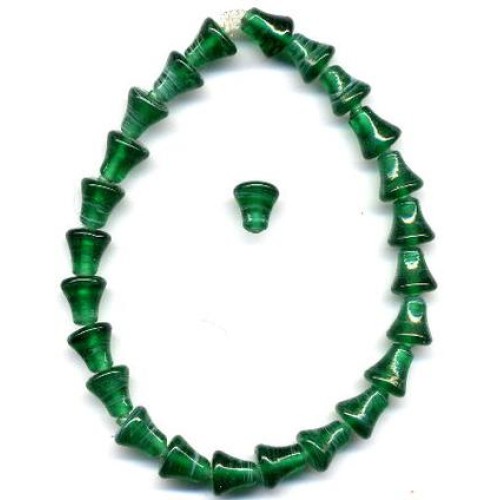 24 lovely little 1920's translucent striated Emerald bells. Each measures 9mm x 8mm at widest part of bell.