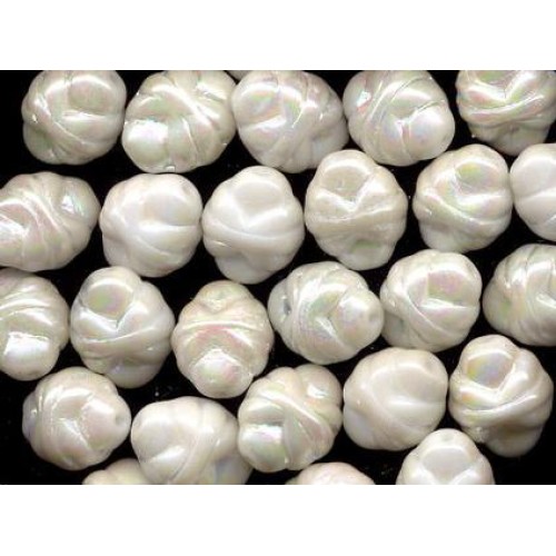 12 very pretty shiny white knots with an Ab coating for color. Beads measure 14mm x 10mm.