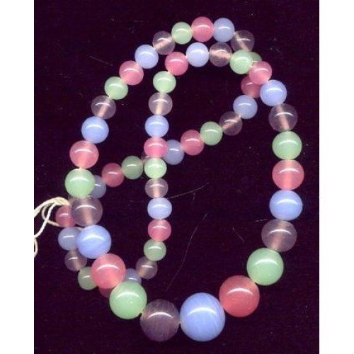 A lovely vintage colorful pastel Japan temporarily strung necklace. Lovely translucent beads with a hint of opalescent glow. Necklace is 19 1/2 inches long. Largest bead is 15mm