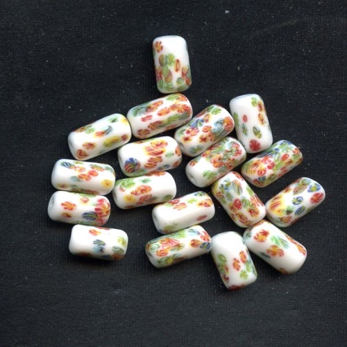 These beautiful cylinder-shaped Japanese Millies measure 12mm x 6mm around. There are 18 being offered in each lot.