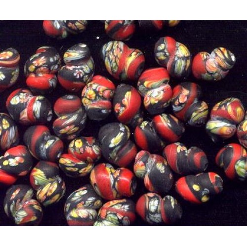 12 wonderful vintage Red and Black millefiori curls with a matte finish. Each curl measures 13mm x 9mm.