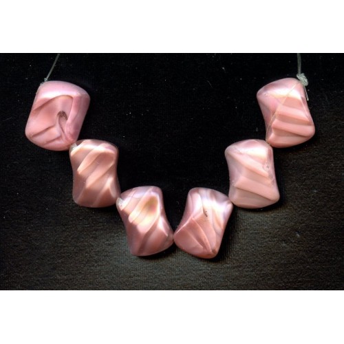 Here are six Vintage rectangular striated mauve beads with holes running from corner to corner the length of each bead. Each bead has lovely faceting on it and measure 19mm x 14mm.