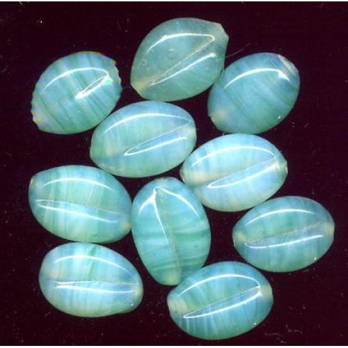 10 lovely vintage opalescent striated light teal swirls measuring 14mm x 20mm.