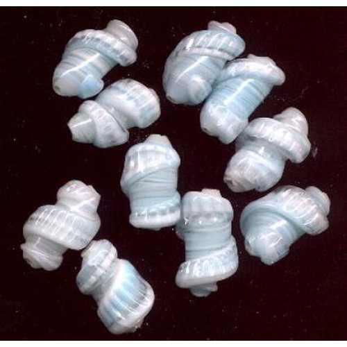 Lovely vintage glass lampwork shells. Powder blue beads measuring 19mm x 12mm.. There are 10 beads per lot