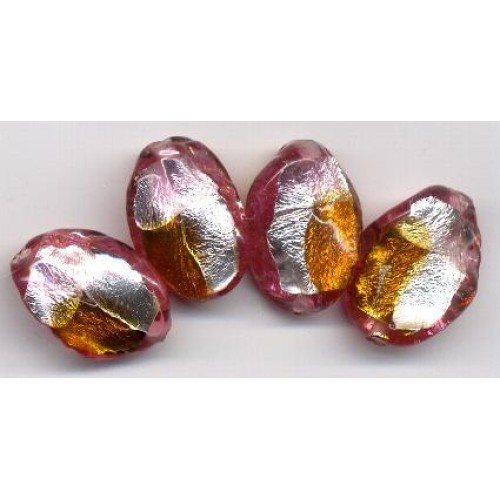 Magnificent vintage focal foils in shades of amber & silver foil on pink. They measure 22mm x 16mm x 8mm thick..