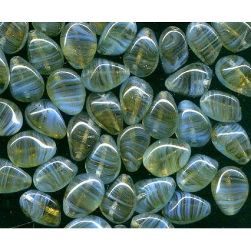 15 lovely vintage beads with a touch of opalescent hue. Shades of striated translucent green with blue. Great looking beads measuring 14mm x 11mm. Beads have a slight twist and have 3 sides.