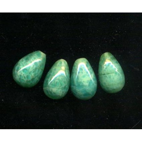 4 beautiful Vintage satin glass drops with hole in top. Reguires an upeye. Drops measure 22mm x 14mm.