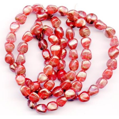 20 lovely vintage Venetian pink coral glass nuggets wrapped with a band of sparkling aventurine on each bead. They measure 8mm.