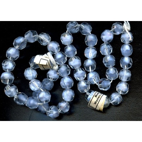 These beautiful Vintage West German Givres are a lovely shade of blue.  Each sparkling bead measures 10mm.  Beads are on original strings with tags.  One strand per lot containing 25 beads per strand..