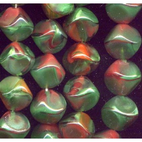 8 Gorgoeus vintage West German beads. Emeralds and Rubies are encased in a clear glass cube. Beads measure 13mm square. Hole runs diagonally across from hole to hole.