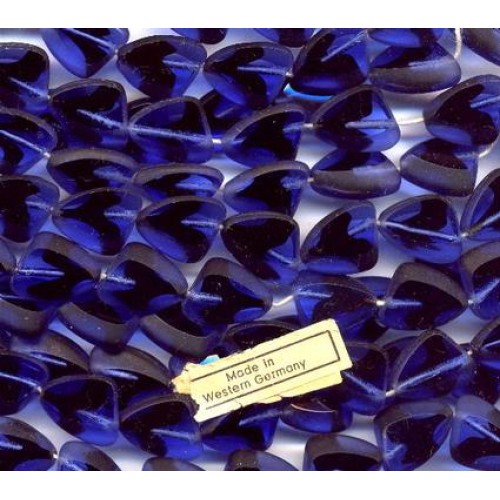 12 very beautiful vintage West German beads measuring 15mm x 12mm x 6mm thick. Very deep translucent sapphire & black givre slice beads. Sides are frosted with top and bottoms shiny.