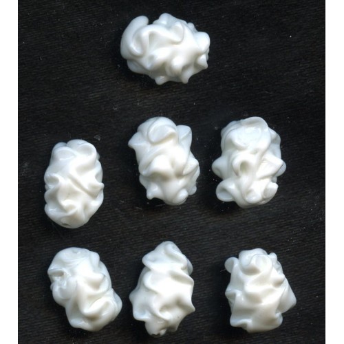 Each of these wonderful Vintage White Lampworked Iced Beads look like someone "iced" them with buttercream frosing or whipped cream. Each bead measures approximately 19mm x 14mm. There are seven of these wonderful beads per lot.