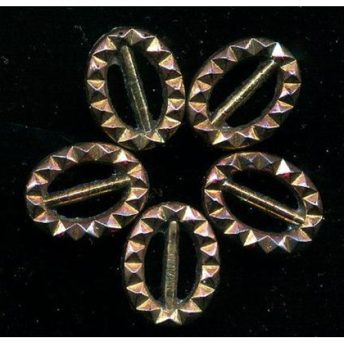 5 lovely Vintage French glass pieces from the early 1900's. Beautiful glass with a hint of rainbow color. Pieces were made to look like cut steel measuring 16mm x 20mm