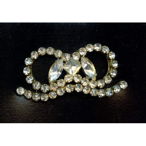 This gorgeous sparkling vintage rhinestone centerpiece can be used with 1, 2 or 3 strands of beads. The bottom part measures 63mm. The bow is 53mm long and the center measures 20mm. All of the stones are in great sparkling shape.