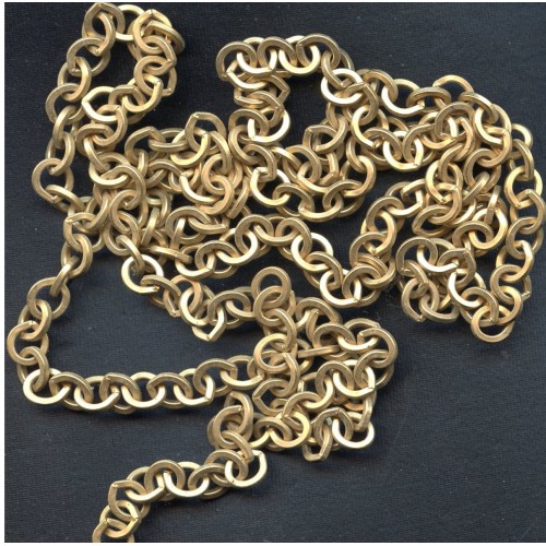 This exquisite Vintage Brass Chain, measuring 40 inches in length, is a true testament to timeless elegance. Each loop of this finely crafted chain measures 5mm, offering a delicate yet sturdy design that can seamlessly blend with any creative project. The possibilities are endless. Whether you envision a charming necklace adorned with your favorite pendants, a delightful charm bracelet that jingles with every movement, or a unique piece of decorative art, this versatile chain provides the perfect foundation for your creativity to flourish. Let your imagination run wild and transform this beautiful vintage piece into a personalized accessory that tells your story.