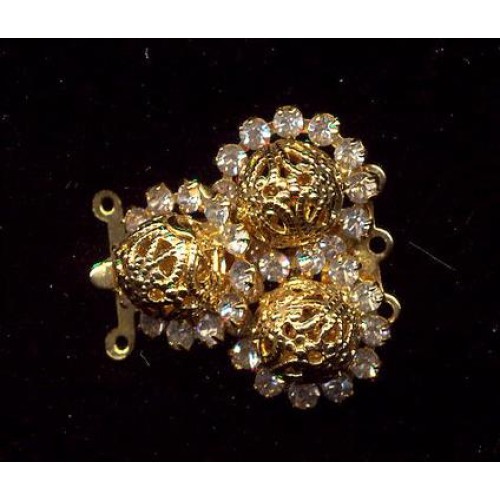 Lovely vintage filigree clasp measuring 25mm x 24mm..There are three filigree balls surrouned by prong set rhinestones. This is a three strand clasp but can easily be used as two or even a one strand. Mint Condition..