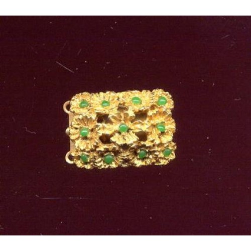 A clasp covered in many pretty flowers and set with tiny green cabachon stones. This is a clasp for 2 strand. Clasp measures 23mm x 16mm.