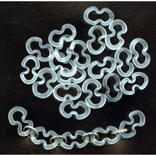 These magnificent Vintage Frosted Glass connectors have the look of Lalique. The photo shows a sample of how they look when put together. Each of these lovely beads measure 22mm x 14mm at the widest part. There are 5 pieces per lot....(Silver Findings not included)