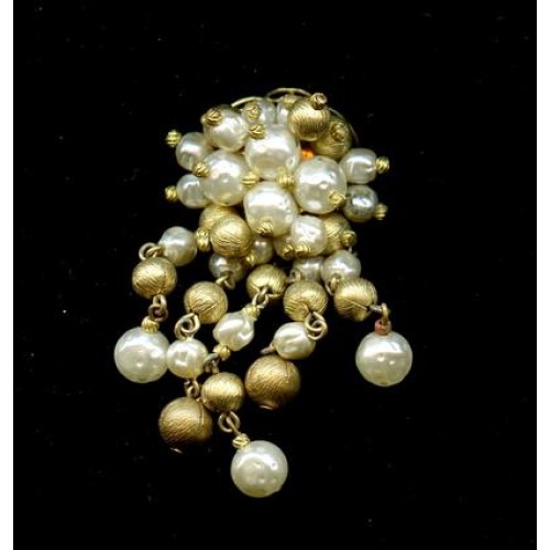 A beautiful Miriam Haskell cluster centerpiece with hanging pearls and brass beads . The filigree back measures 25mm.