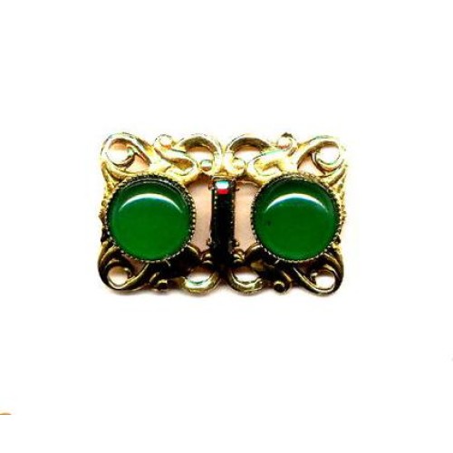 Gorgoeus vintage scrolled brass centerpiece with 2 bezel set stones..Can be used for a bracelet or a necklace. The center has a faceted glass hematite prong set rhinestone. Very lovely piece. Not at all flimsy and measures 30mm x 22mm..I have a few of these that I will be listing as they sell. A necklace with a bracelet to match would be fabulous.