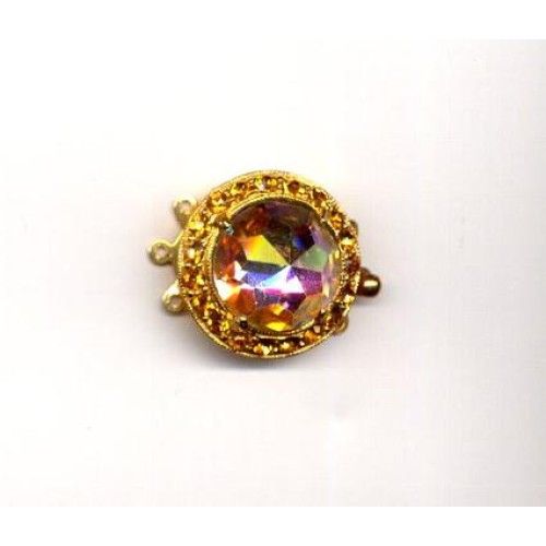 Gorgoeus AB swarovski stone prong set with a row of topaz rhinestones. I have two others i'll be listing with different stones surrounding the center stone. This beauty is for a 1-2 or 3 strand creation and measures 28mm.