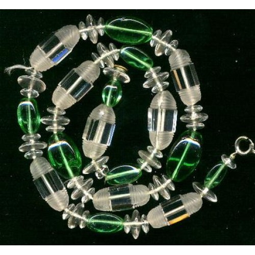 A real beauty and all ready to wear or take it apart to make your own creation. The beads are gorgeous and measure 20mm x 8mm. The center of each bead has 4 clear sparkling panels and the ends are frosted with a wonderful deco design. Necklace measures 17 inches long.