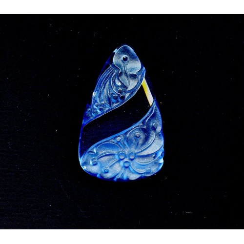 This lovely Vintage light sapphire floral pendant measures 42mm long and is 26mm at its widest point. The swirl is translucent and has facets on it that don't show in the picture, and the flowers have a matte finish. Also available in Topaz. This Pendant matches beautifully with the West German Multi Faced Saphire Blue Vintage Beads pictured below.