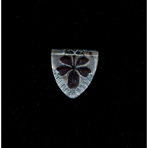 I believe this gorgeous vintage molded clear glass pendant is from the 1940's. It has lots of design work in it, and the sides are hand ground. This great looking centerpiece has a hole running across the top. The pendant measures 40mm across and 40mm from its top to its point.