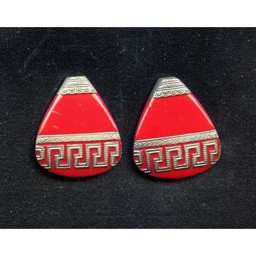 This gorgeous Deco pendant is decorated on both sides with a silver design. Pendant needs an up-eye. The piece measures 28mm long, is 25mm at it's wides point and is 6mm thick. This listing is for one of the pendants shown in the picture above.