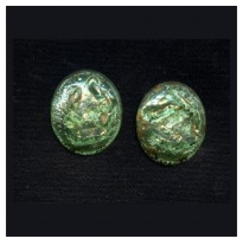 These two Lovely Vintage Venetian Green and Gold Stones are concave in the back and covered with Gold Foil. The top has nooks and crannies of Gold Foil. Each of these lovely beads measure 20mm x 8mm