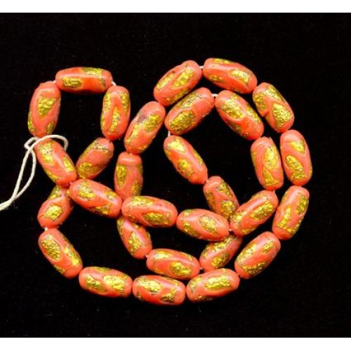 9 Gorgeous vintage coral beads layered with gold foil. Glass beads measuring 16mm x 8mm.