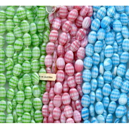 1 dozen beautiful vintage Austrian beads measuring 10mm x 15mm x 5mm thick. Lovely beads with a beautiful sheen.