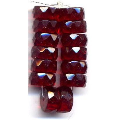 Lovely vintage ruby red glass faceted rondells measuring 10mm x 5mm wide