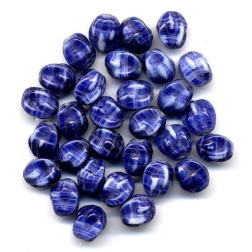 30 vintage glass denim colored beads with a pinched design. Each wonderful bead measures 10mm x 8mm.