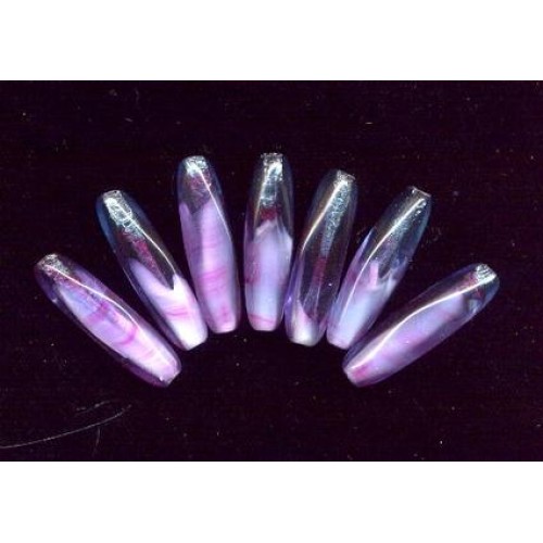 7 very beautiful focal beads measuring 25mm x 7mm. Lovely colors of lilac, white and blue.