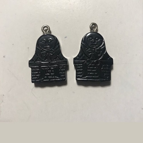 These adorable vintage bakelite Humpty Dumpty charms are two-sided. Charms measure 18mm x 27mm (including the loop).
