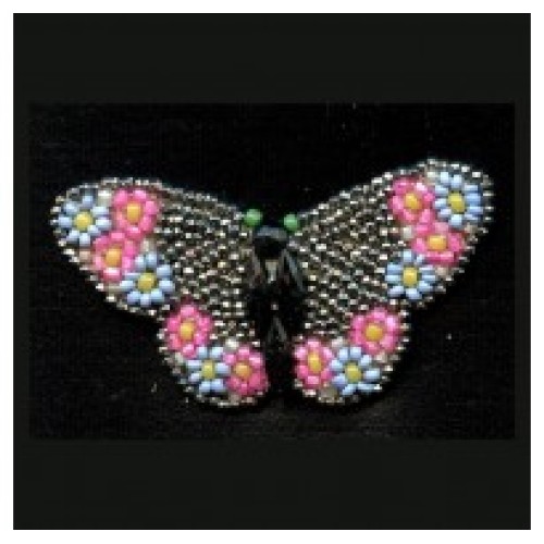 This Beautiful hand stitched Vintage Butterfly applique is made with cut steel, flowered seed beads, with faceted long beads for its body. It is hand sewn on a piece of stiff burlap. This piece has plenty of body to it and measures 54mm from wing tip to wing tip and is 28mm long. This gorgeous piece is a one of a kind and is in absolutely Mint Condition!