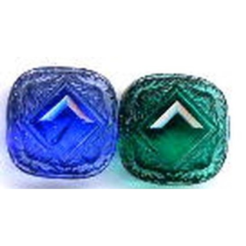 Two beautiful art Deco stones with slightly raised faceted backs. Tops have a lovely frosted etched design with faceted square centers..Stones measure 12mm x 6mm thick at center which is widest spot.