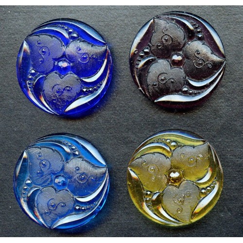 These Vintage Floral Stones have a hole in the flat back that will allow them to be used as Hat Pins. (The Topaz stone has a "nub" in the back to take the pin. Each piece measures 40mm and is 5mm thick. They have a very detailed raised floral design with matte petals. I've had these set in sterling and they made beautiful pendants. Each lot consists of one of these beauties in any of the following colors: Aqua, Cobalt, Topaz and Amethyst.