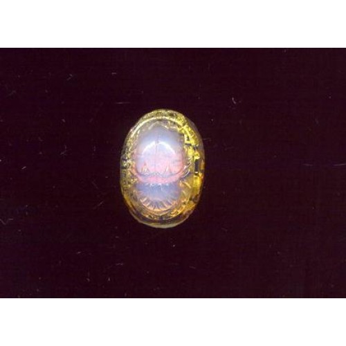 Magnificent vintage flat back scarab stone of gold foil and pink opalescent glass. I had some of these set in sterling that I will be listing. This piece measures 25mm x 18mm x 10mm thick. Botttom edge of glass is faceted