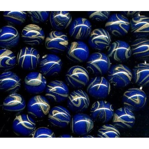 10 wonderful vintage Japan cobalt blue beads that look like the planet earth. Swirls of greenish gray on shiney cobalt. Beads measure 14mm.
