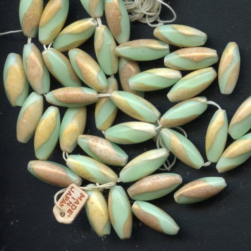 These lovely Japanese beads are a swirl of mint green and cream. They measure 17mm x 7mm. There are 8 beads to a lot.